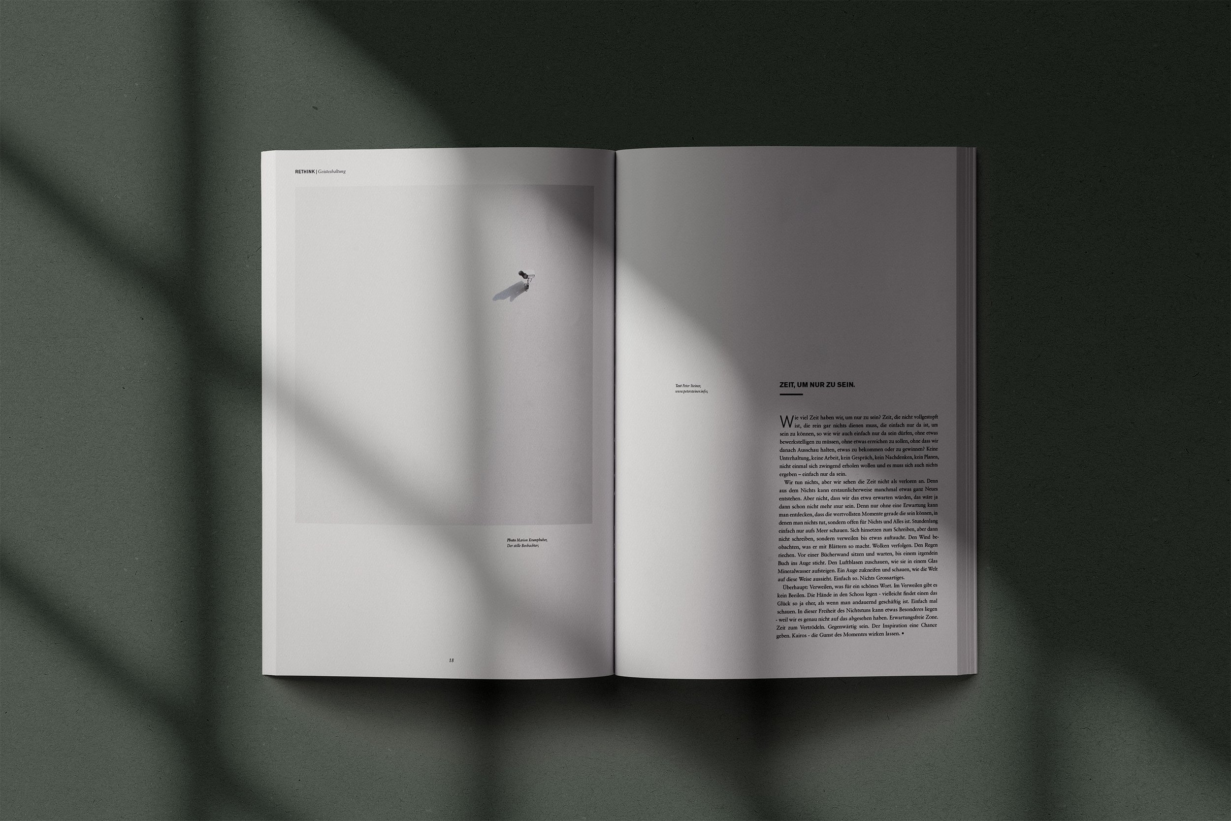 Mein Design ist reduziert und auf Wirkung ausgerichtet. Inhalte werden präzise aufbereitet und visuell ansprechend gestaltet. Mit sicherem Gespür für Typografie, Komposition und Farbe arbeite ich in den Bereichen Editorial Design, Branding, Packaging und Illustration. Fotografie und Video ergänzen meine gestalterische Arbeit.